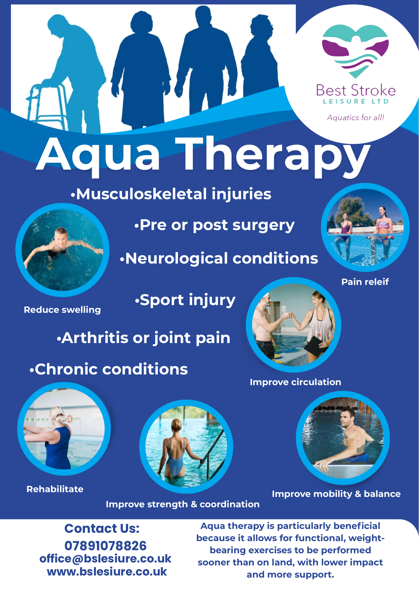 Please register your interest today by clicking the button below and select ‘Aqua Therapy’ on the form.